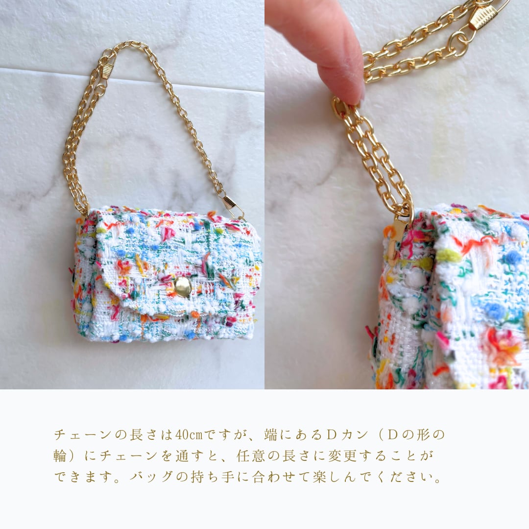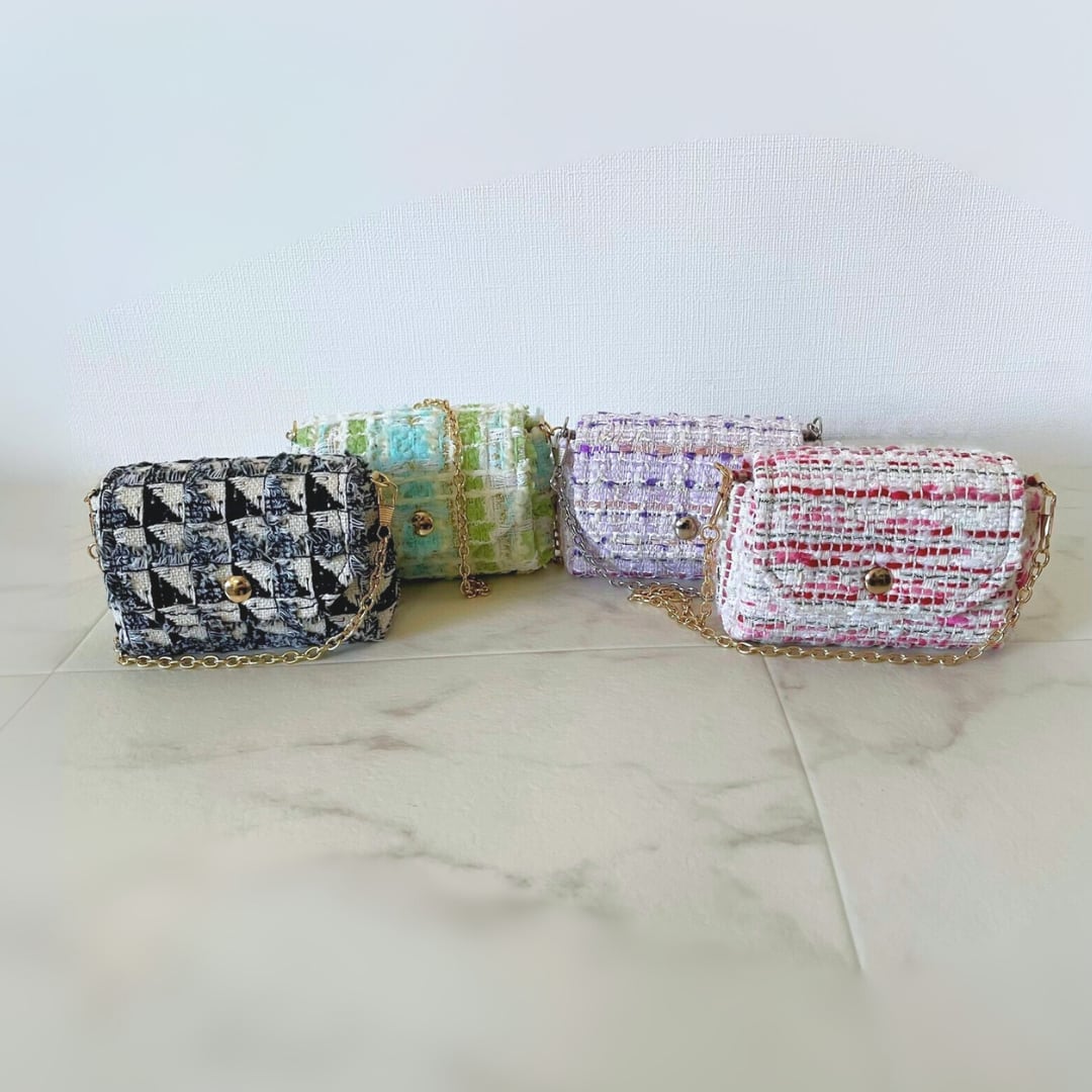 異なるツイード生地とチェーンカラーの組み合わせは、全部で4色あり