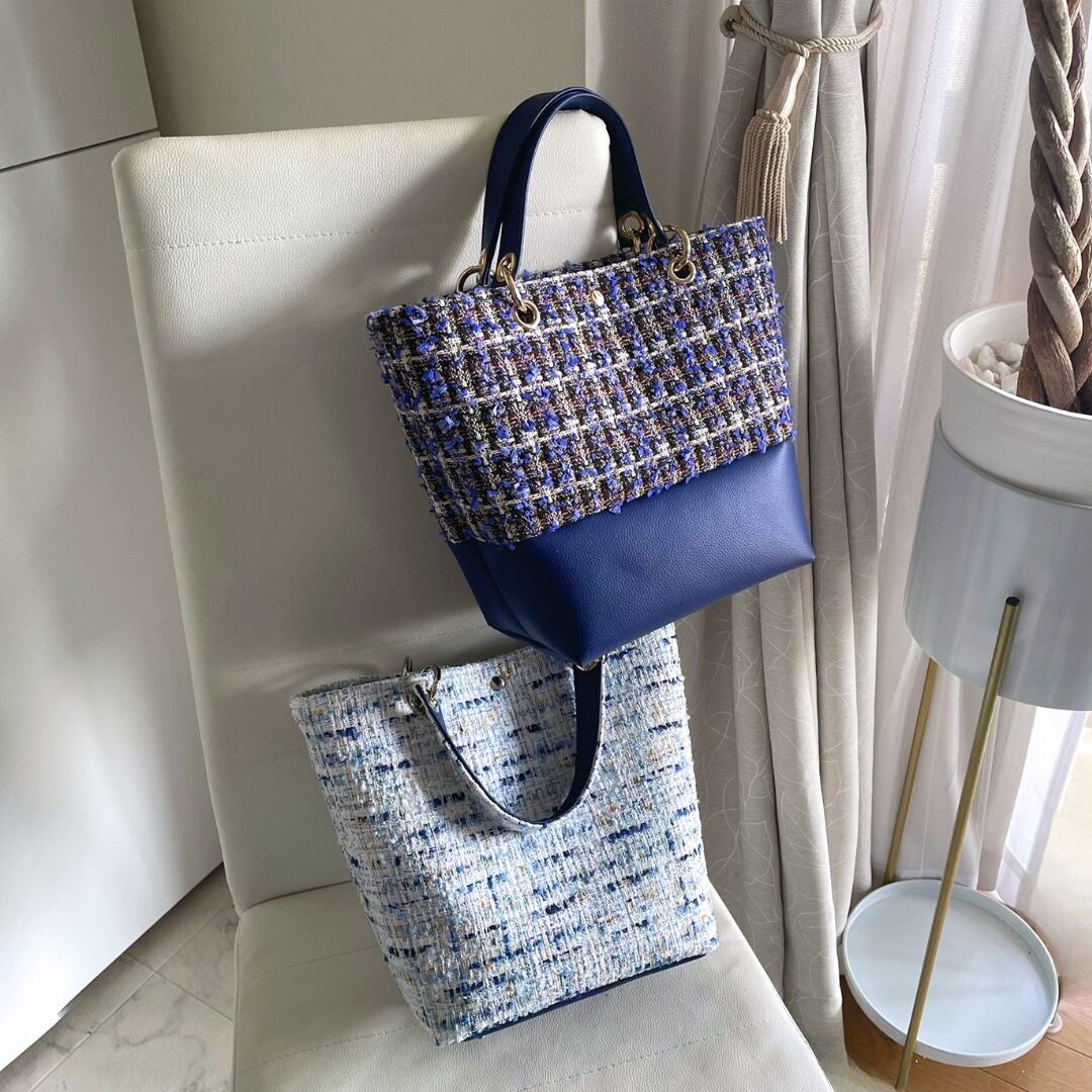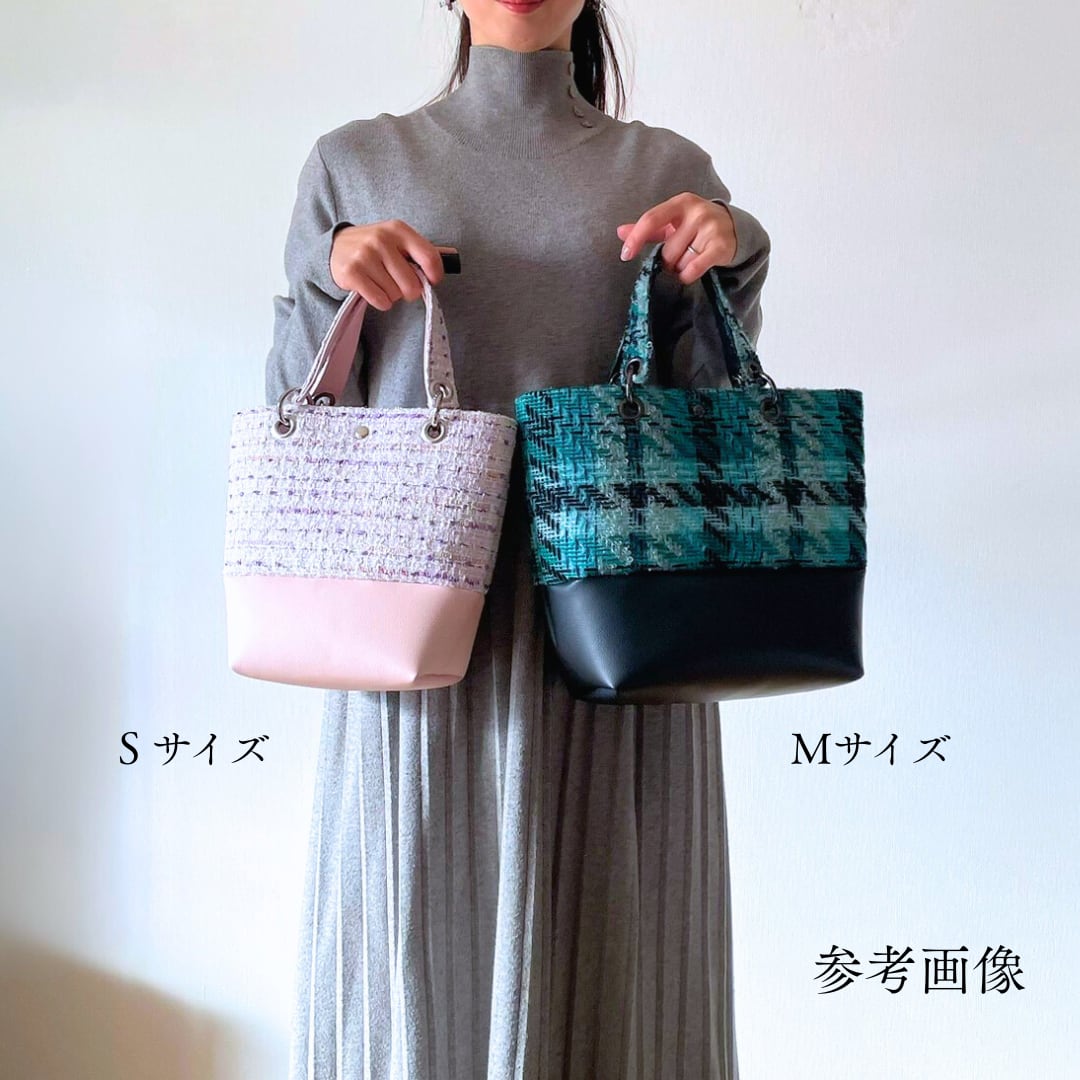 【シュガーブルー】マチ付きトートバッグ Mサイズ ツイードバッグ トートバッグ サブバッグ ツイード